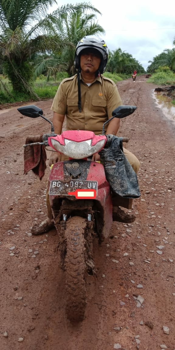 Sepeda motor yang digunakan bukan hanya bakal penuh dengan lumpur, bahkan tak jarang Mukamil dan guru dari luar harus terjatuh sebelum sampai ke sekolah sehingga pakaian pun penuh dengan tanah lumpur.