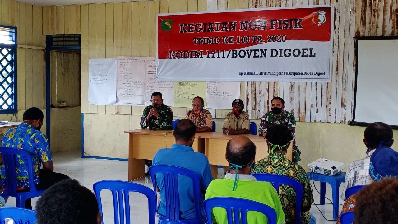 (Boven Digoel-Papua). KRSUMSEL.com – Dalam rangka mengisi kegiatan Program Non Fisik TNI Manunggal Membangun Desa (TMMD) Reguler ke-109 Tahun 2020 Kodim 1711/Boven Digoel mengadakan Sosialisasi Administrasi Kependudukan.
