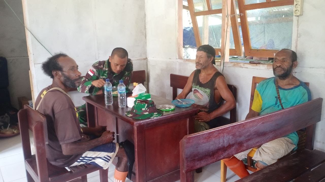 (Boven Digoel-Papua). KRSUMSEL.com – Dansatgas TMMD Reguler ke-109 Kodim 1711/Boven Digoel Letkol Czi Daniel Panjaitan jalin keakraban dengan anggota satgas dan masyarakat Kakuna disaat pelaksanaan istirahat makan siang di dapur Satgas TMMD ke-109, Kampung Kakuna, Distrik Mindiptana, Kab. Boven Digoel, Papua, Senin (28/9/2020).