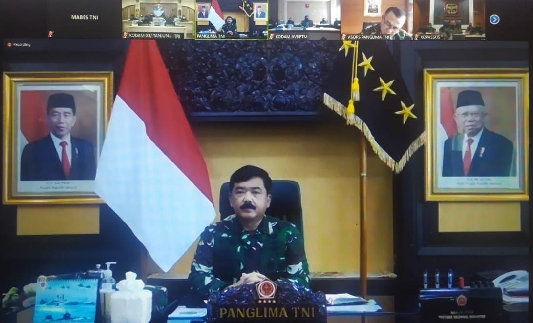 Dalam rapat yang digelar secara virtual tersebut Panglima TNI mengucapkan rasa terima kasih dan penghargaan serta rasa bangganya kepada prajurit dan satuan yang dengan semangat kepeduliannya dapat membantu kesulitan rakyat.(****)