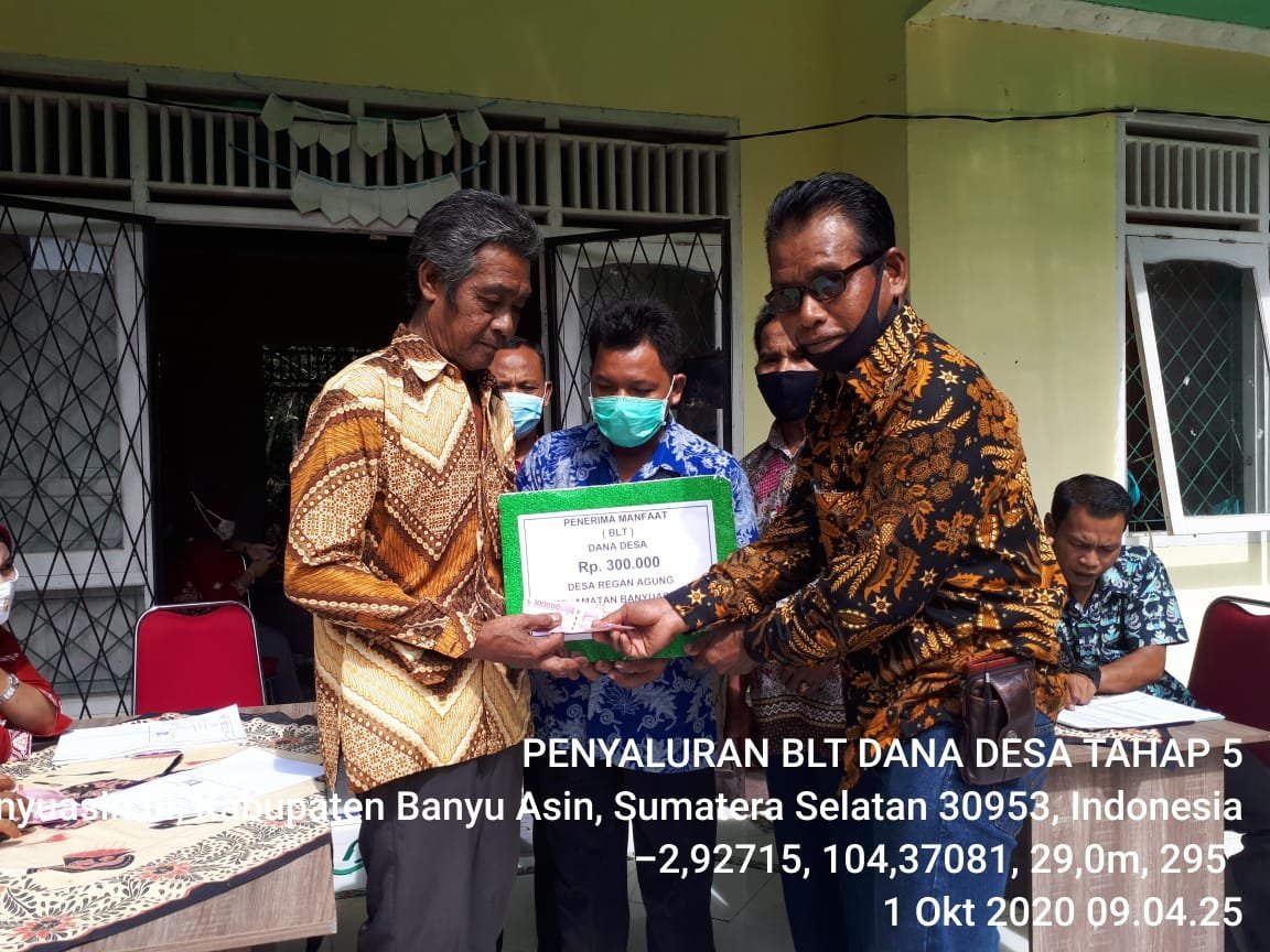 Sekali lagi saya atas nama pemerintah Desa Regan Agung, sangat berterima kasih dengan adanya BLT-DD, terutama kepada pemerintah pusat dan pemerintah kabupaten Banyuasin, agar dana tersebut dapat di pergunakan sebaik-baik mungkin, tutup Kepala Desa Regan Agung, Hasan.