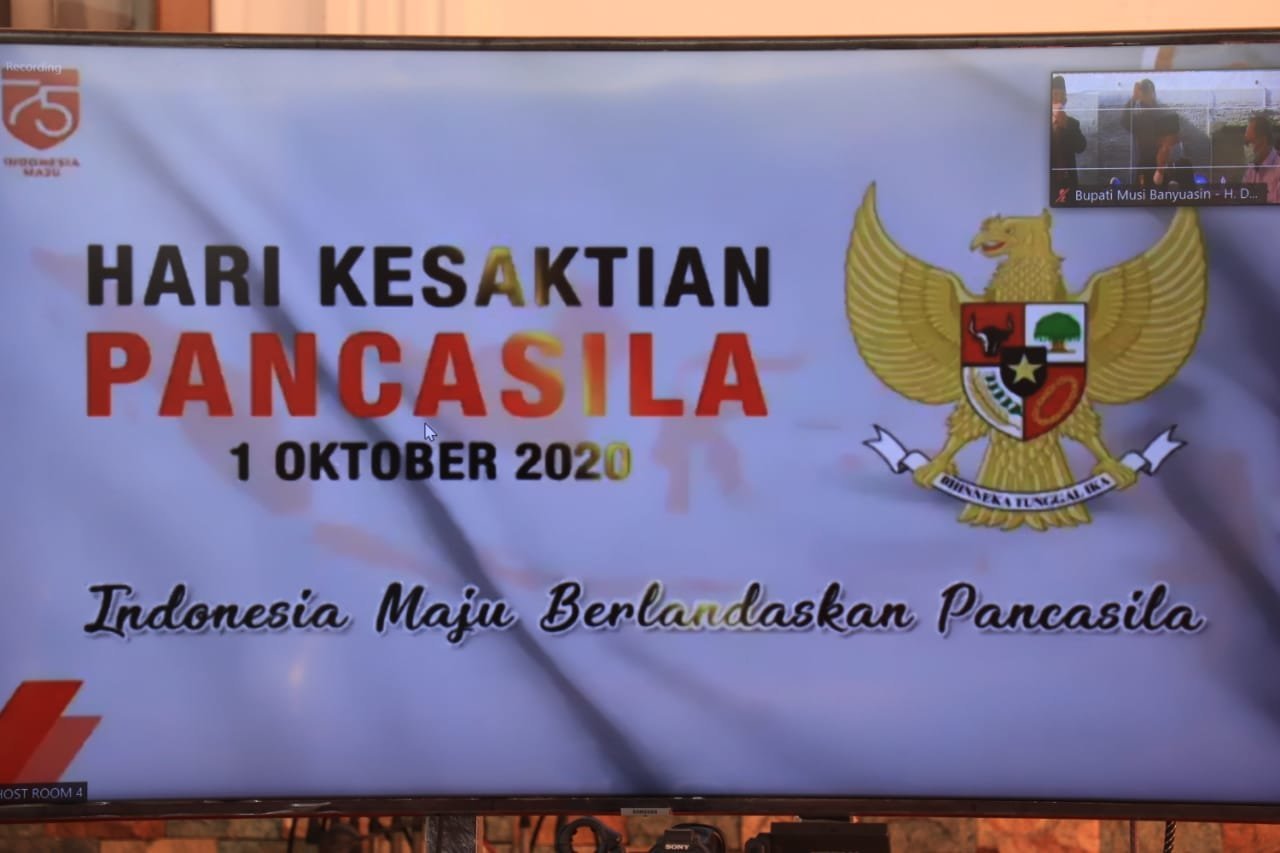 Muba, KRSumsel.com – Bupati Muba Dr H Dodi Reza Alex Noerdin melalui Sekretaris Daerah Kabupaten Musi Banyuasin Drs H Apriyadi MSi mengikuti upacara peringatan Hari Kesaktian Pancasila tahun 2020 secara virtual di Rumah Dinas Sekda Muba, Kamis (1/10/2020).