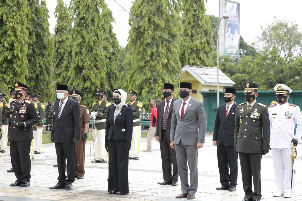 Palembang, KRSUMSEL.com – Wakil Gubernur Sumsel H Mawardi Yahya bersama Forkopimda Sumsel menghadiri Upacara ziarah nasional di TMP Ksatria Ksetra Siguntang Palembang, Jumat (02/10/2020) pagi