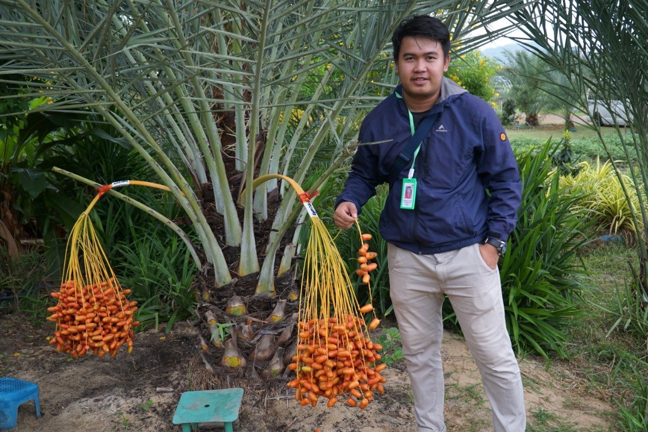 Ahmad Li Zikri pemilik kebun menjelaskan dirinya berkebun Kurma sudah kisaran 18 bulan yang lalu, dengan jumlah 600 pohon terinspirasi dari Thailand, untuk itu dirinya optimis kedepan harus bisa seperti Thailand.