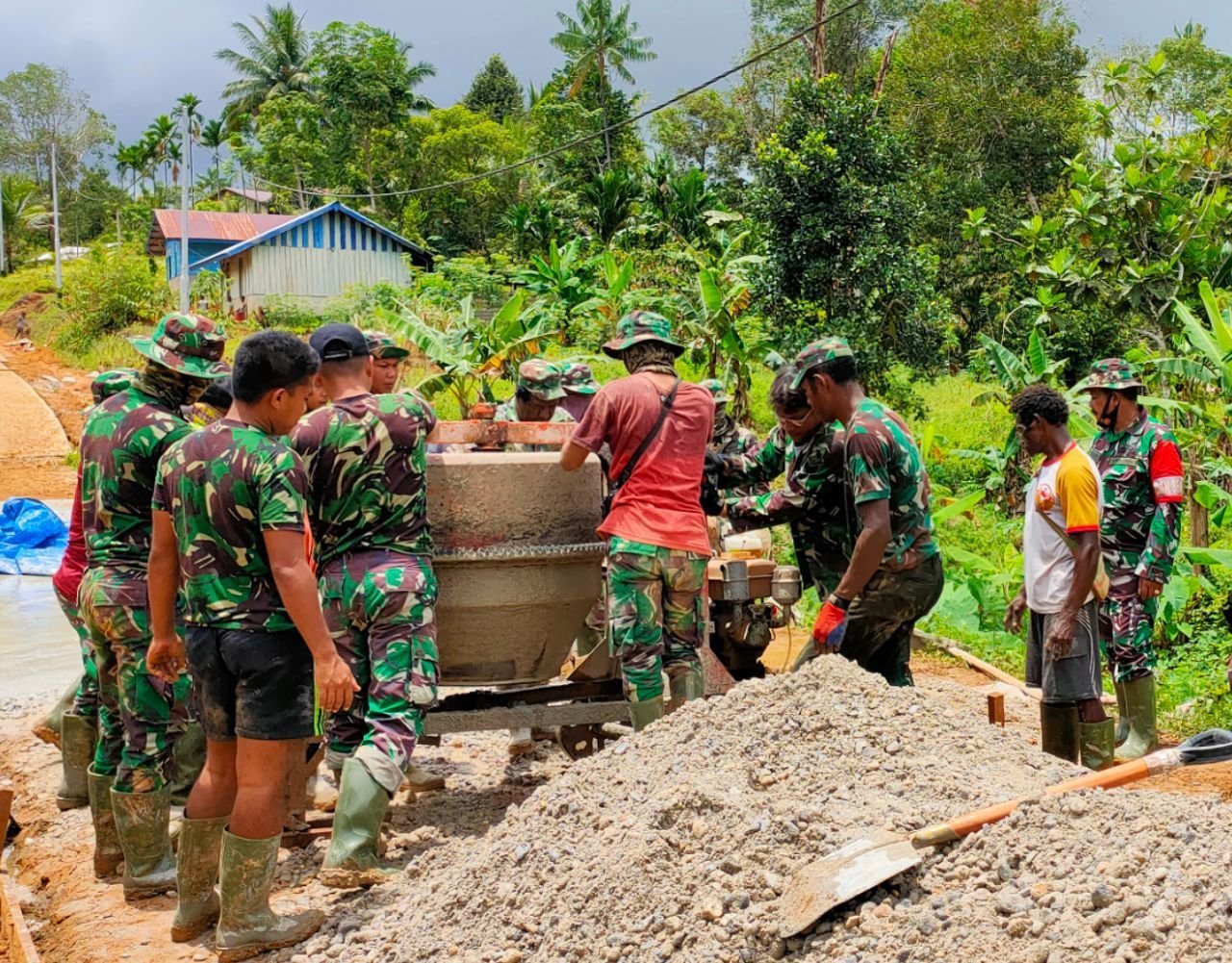 Menurutnya, semua itu hasil kerja sama yang baik antara anggota Satgas dengan masyarakat saat melakukan pengecoran jalan. “Anggota Satgas bersama warga saling bergotong royong melakukan pengecoran jalan agar pengerjaannya cepat selesai,” ucapnya.