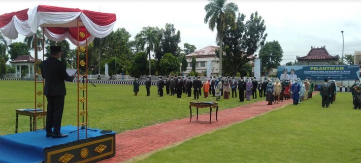 Pelantikan dan pengambilan sumpah atau janji jabatan, dilaksanakan sekira pukul 11.00 Wib di halaman kantor Bupati OKI ini sesuai dengan keputusan Bupati OKI Nomor 821.2/09.10/KEP – BKD.III/2020 yang dikeluarkan pada tanggal 9 Oktober 2020.
