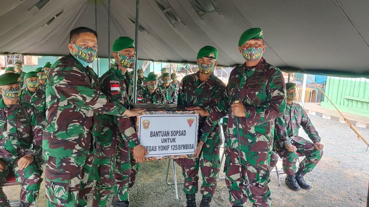Dalam kunjungannya ke jajaran Satgas Pamtas RI-PNG Yonif 125/Simbisa, Tim Wasev Sopsad juga memberikan bingkisan berupa sembako.