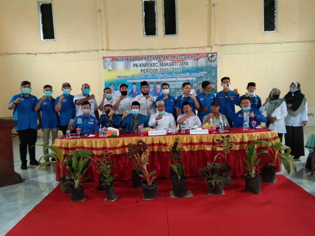 BANYUASIN.KRSumsel.com – Musyawarah tingkat kecamatan (Muscam) Komite Nasional Pemuda Indonesia (KNPI) untuk Pengurus Kecamatan Makarti Jaya. Kegiatan Berlangsung di aula kantor kecamatan Makarti Jaya Kabupaten Banyuasin, dihadir oleh camat Makarti Jaya, Sarip, S.P.,MM bersama Forkopimcam Setempat, Rabu (14/10/2020).