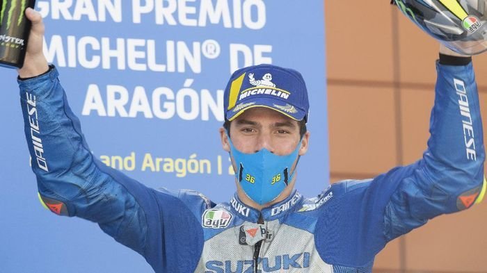 Mir menduduki posisi ketiga di MotoGP Aragon yang berlangsung hari Minggu (18/10/2020). Pebalap Spanyol itu berada di belakang Alex Rins dan Alex Marquez yang masing-masing menempati peringkat pertama dan kedua.