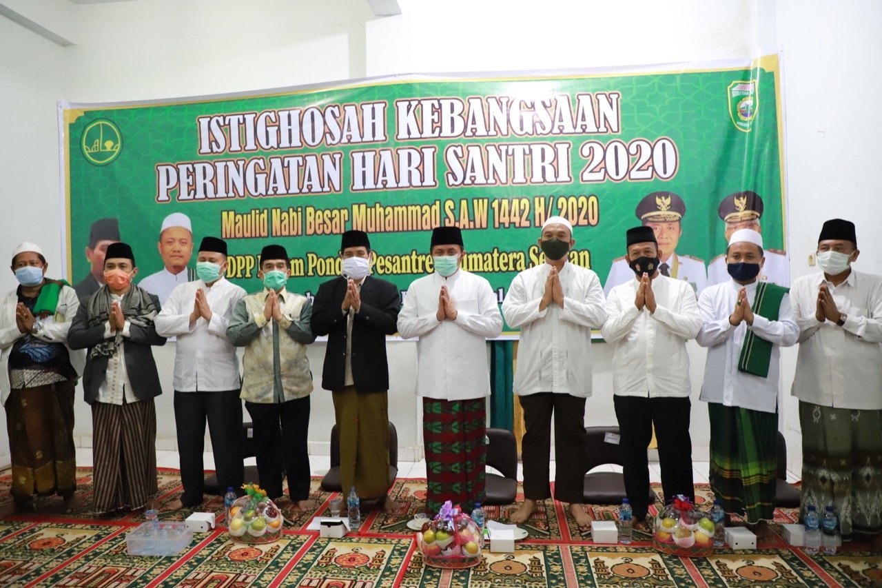 “Forum ini sangat tepat. Alhamdulillah semua Ponpes mau untuk bersatu diwadah ini,” ucap Herman Deru saat sambutan di istighosah kebangsaan peringatan hari santri nasional tahun 2020 yang diselenggarakan Dewan Pengurus Pusat (DPP) Forpess Sumsel di Sekretariat DPP Forpess di Jalan Kolonel H Burlian Palembang, Senin (26/10) malam.