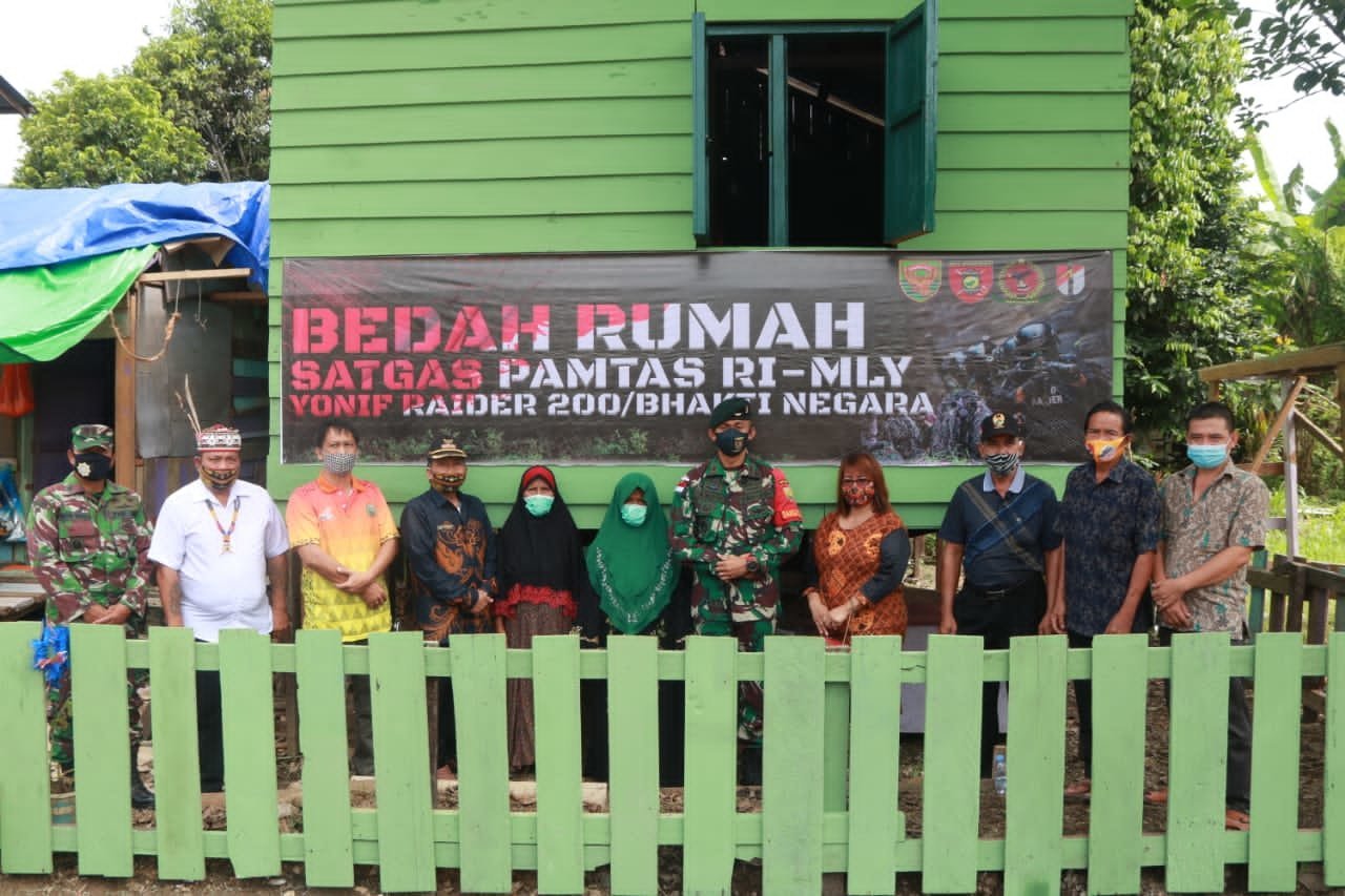 Komandan Satgas Pamtas RI-MLY Yonif Raider 200/BN Mayor Inf Andy Irawan S.H menyampaikan, kegiatan bedah rumah ini merupakan salah satu dari program Satgas Pamtas kepada masyarakat, dirilis di Ds. Batu Majang Kec. Long Bagun Kab. Mahulu Prov. Kaltim Sabtu (31/10/2020)