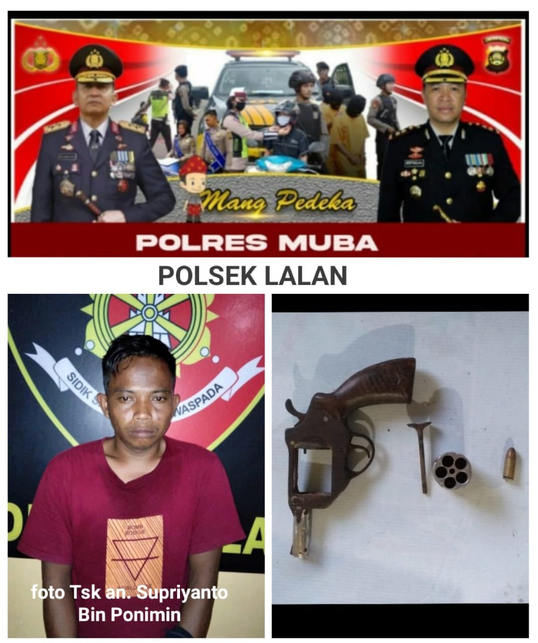 Kapolres Muba AKBP Erlin Tangjaya, SH, SIK melalui Kapolsek Lalan Iptu Junardi kepada KRSumsel.com, Selasa (03/11/2020) mengatakan. Penangkapan berawal dari laporan masyarakat tentang adanya seseorang yang membawa senjata api ilegal.