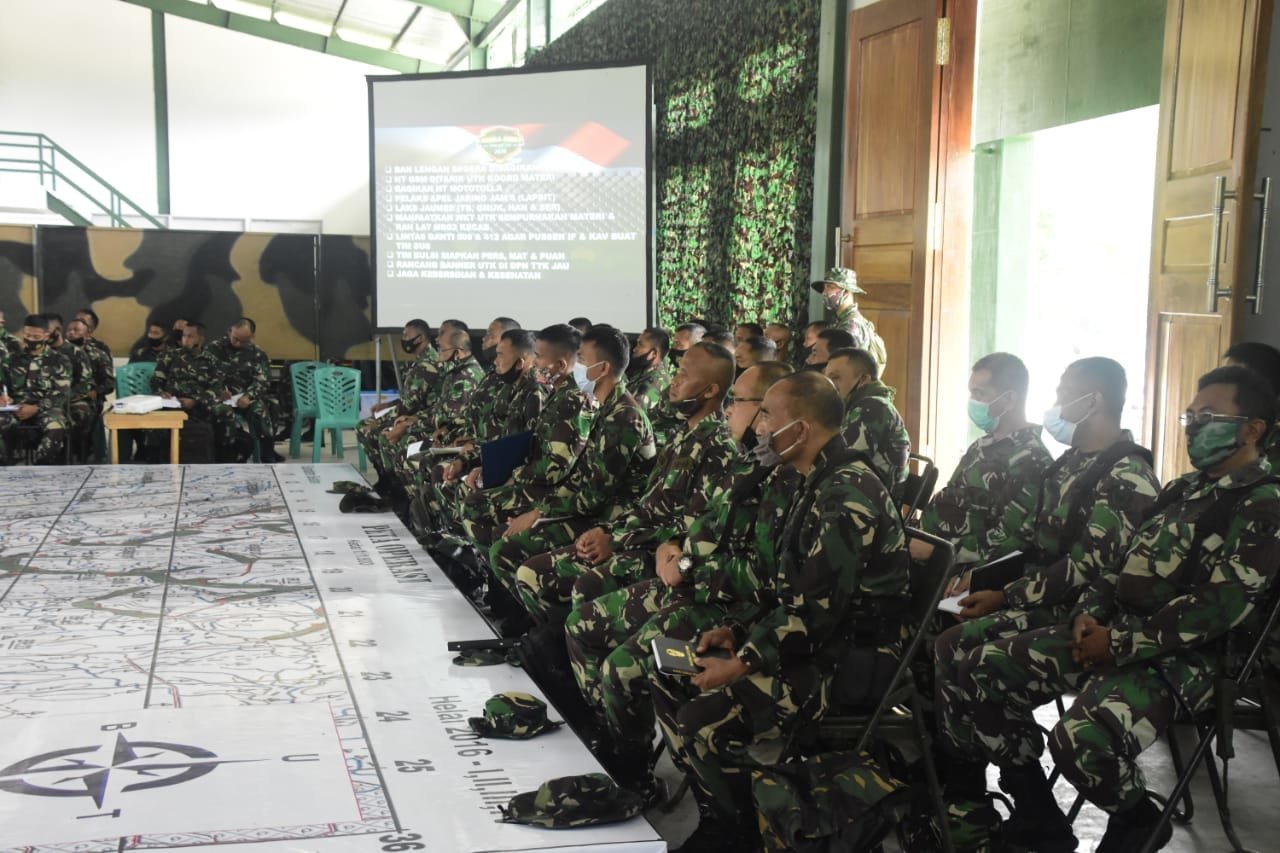 (Baturaja). KRSUMSEL.com – Latihan Taktis BTP Brigif Raider-9/DY Kostrad kini memasuki tahap pelaksanaan, sejumlah agenda kegiatan yang berkaitan dengan penyelenggaraan latihan digelar di Komando Latihan, Baturaja, Palembang, Sumsel, Jumat (6/11/2020), salah satunya adalah rapat koordinasi yang diikuti seluruh pelatih, penilai, koordinator dan penyelenggara latihan.