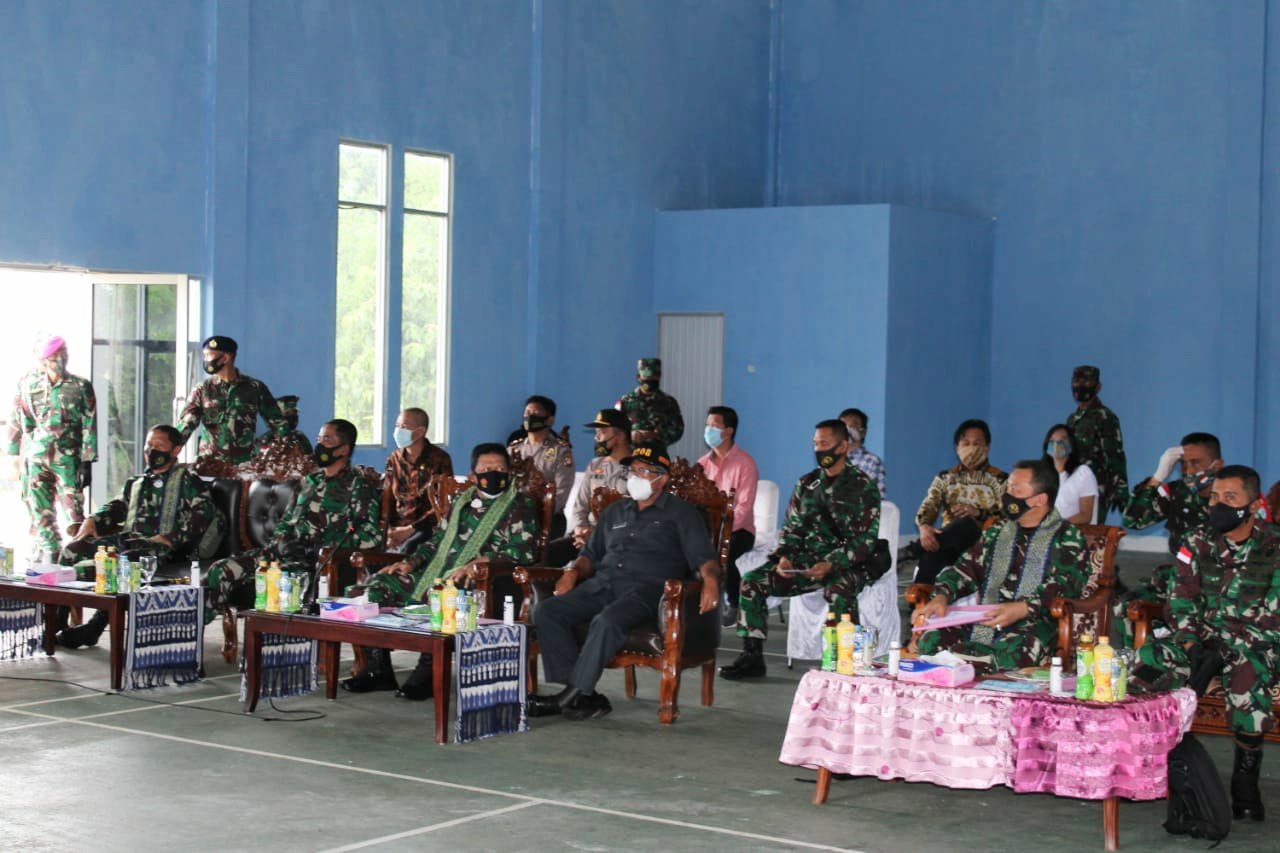 Usai memberikan pengarahan, untuk memotivasi prajurit, Pangkogabwilhan I memberikan bantuan berupa alat olah raga untuk prajurit Pos AL Temajuk. (Pen Kogabwilhan I).(****)