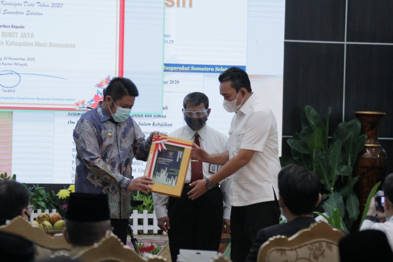“Hari ini kita terima DIPA Tahun Anggaran 2021 untuk instansi vertikal di Kabupaten Musi Banyuasin dan Transfer ke Daerah dan Dana Desa (TKDD) Tahun 2021 serta sekaligus menerima penghargaan Penghargaan Desa Prospektif Good Government dalam Pengelolaan Keuangan Desa Tahun 2020 dari Kementerian Keuangan Republik Indonesia Direktorat Jenderal Perbendaharaan Kanwil Sumsel untuk Desa Bukit Jaya Kecamatan Sungai Lilin Kabupaten Musi Banyuasin” ungkap Wakil Bupati Muba Beni Hernedi SIP.
