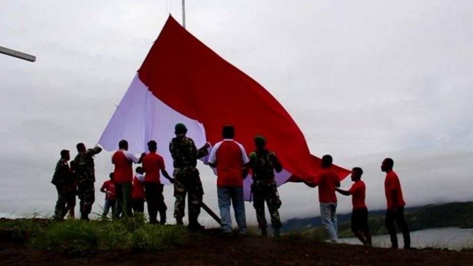 Papua, KRsumsel.com – Sejumlah tokoh adat Kampung Doyo Lama, Distrik Waibu, Kabupaten Jayapura mengibarkan bendera merah putih raksasa di puncak bukit Tungkuwiri pada Selasa (1/12/2020) pagi.