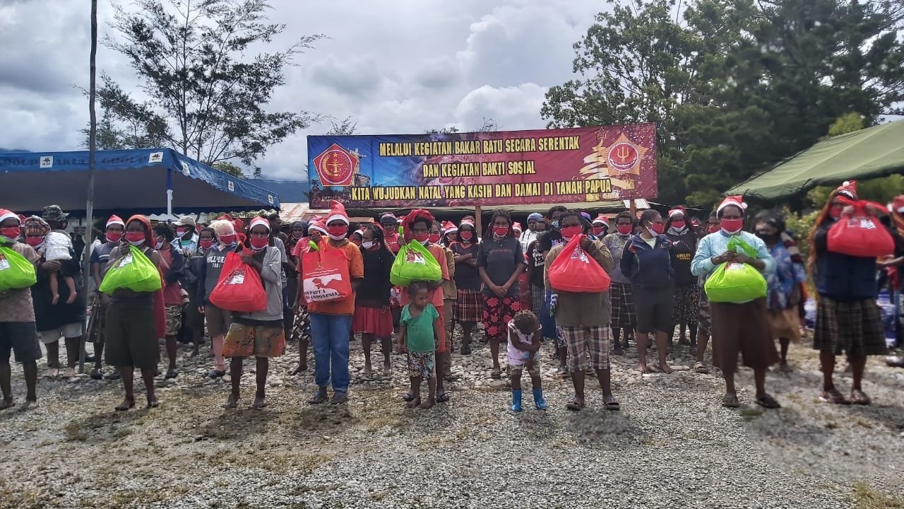 Selain bakar batu juga dilaksanakan Baksos kepada masyarakat dengan membagikan 400 bingkisan sembako dan masker.