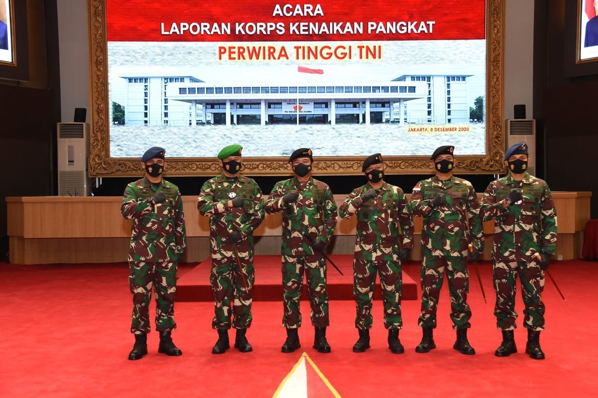 Jakarta, KRsumsel.com – Panglima TNI Marsekal TNI Hadi Tjahjanto, S.I.P. menerima Laporan Korps Kenaikan Pangkat 47 Perwira Tinggi (Pati) TNI, terdiri dari 26 Pati TNI AD, 8 (delapan) Pati TNI AL dan 13 Pati TNI AU, bertempat di Mabes TNI, Cilangkap, Jakarta Timur, Selasa (8/12/2020).