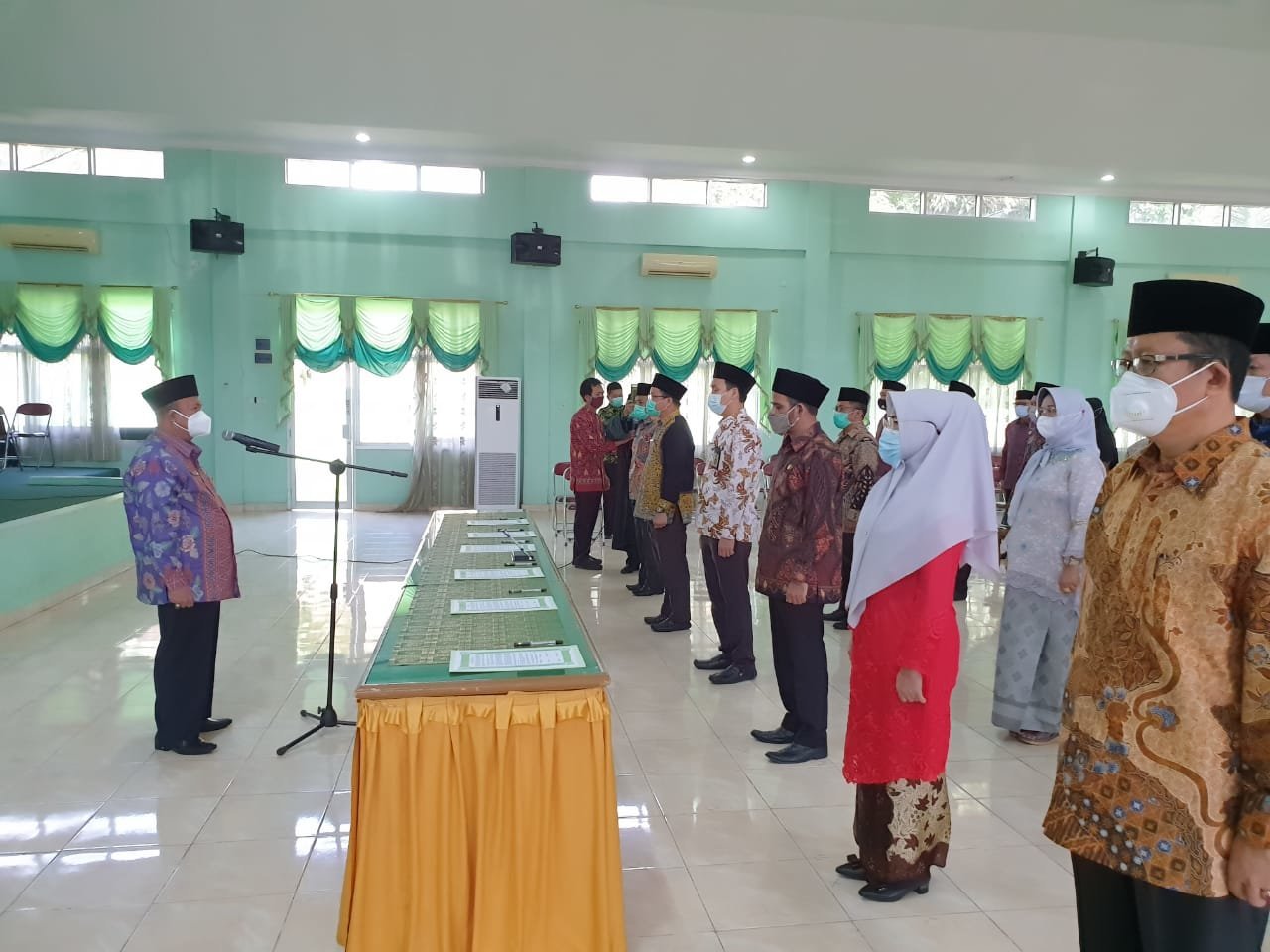 Palembang, KRSumsel.com – Kakanwil KemenagSumsel Dr. Drs. H. Mukhlisuddin SH, MA melantik 19 pejabat Kanwil Kemenag Sumsel di Aula Pusat Informasi Haji (PIH) Palembang, Rabu (23/12). Mereka yang dilantik terdiri dari enam pejabat Fungsional Tertentu dan 13 pejabat Administrasi eselon IV.