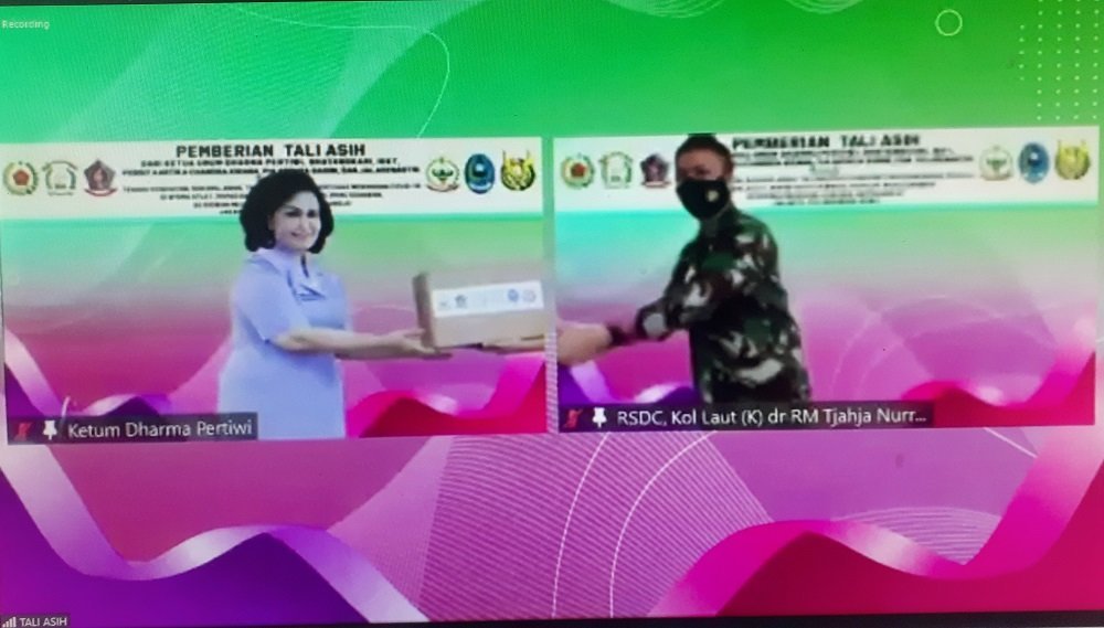 Dalam sambutannya secara virtual, Ketum Dharma Pertiwi mengucapkan terima kasih yang tak terhingga kepada tenaga kesehatan dan relawan yang telah berjuang melayani masyarakat dimasa sulit ini.