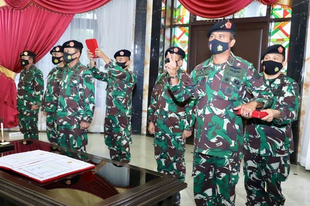 Sebagai pejabat baru, Asrenum Panglima TNI Laksda TNI Heru Kusmanto dan Aslog Panglima TNI Marsda TNI Dento Priyono, melakukan penandatanganan pakta integritas dan berita acara serah terima jabatan, dilanjutkan dengan pengambilan sumpah jabatan yang dipimpin langsung oleh Panglima TNI Marsekal TNI Hadi Tjahjanto.