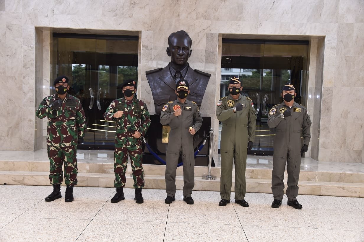 Jakarta, KRsumsel.com – Panglima TNI Marsekal TNI Hadi Tjahjanto, S.I.P., menghadiri acara Penyematan Wing Kehormatan Penerbang Kelas 1 TNI AU kepada Kapolri Jenderal Polisi Drs. Idham Azis, M.Si, yang dilaksanakan oleh Kepala Staf Angkatan Udara (Kasau) Marsekal TNI Fadjar Prasetyo, S.E., M.P.P. bertempat di Lobby Ruang Hening Gedung R.S. Suryadarma, Mabes TNI AU Cilangkap Jakarta Timur. Kamis (7/1/2021).