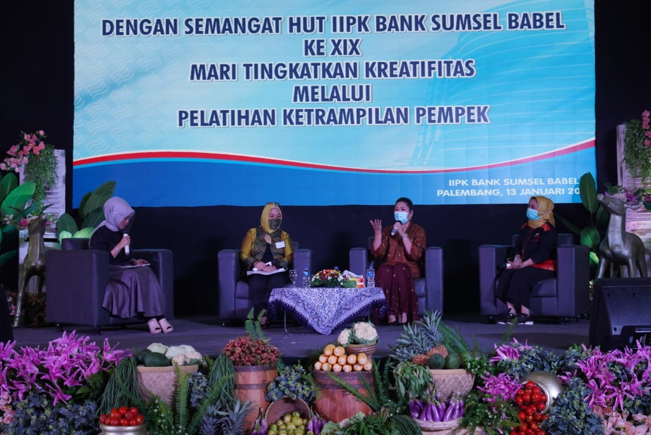 PALEMBANG, KRsumsel.com – Ketua TP PKK Sumsel Hj. Febrita Lustia HD mengapresiasi upaya Ikatan Istri Pegawai dan Karyawati Bank Sumsel Babel yang mengelar pelatihan keterampilan membuat empek-empek atau pempek.