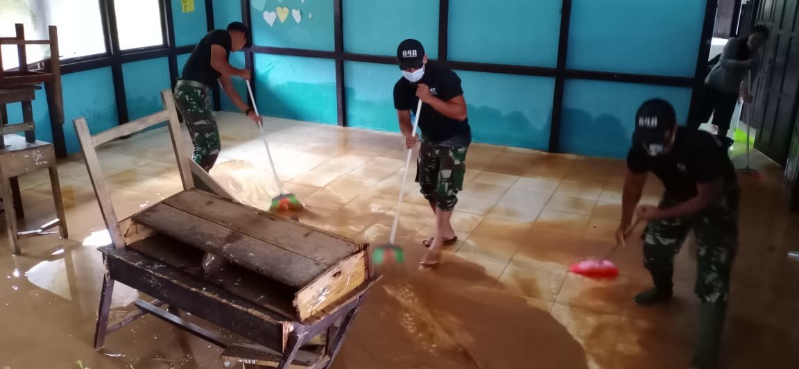 “Pembersihan lumpur dan sampah pasca banjir selain dilaksanakan di lingkungan sekolah, juga dilaksanakan di pemukiman warga,” tambahnya.