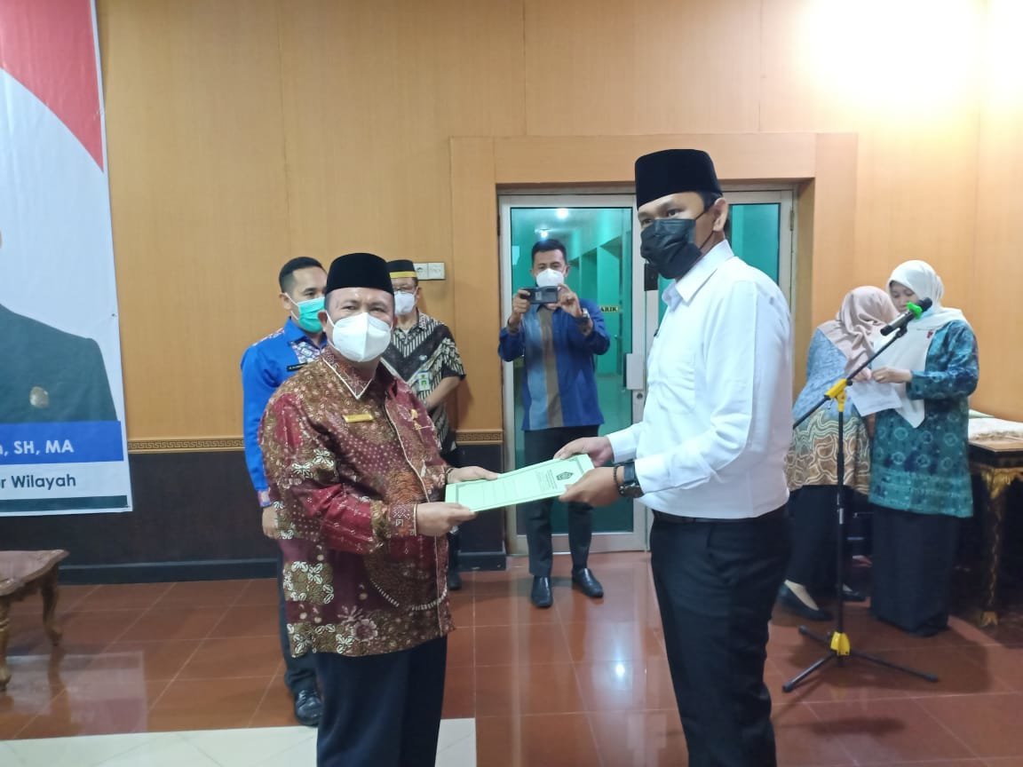 Palembang, KRSumsel.com – Kakanwil Kemenag Sumsel Dr. Drs. H. Mukhlisuddin SH, MA menyerahkan surat keputusan (SK) kepada 18 calon pegawai negeri sipil (CPNS) Kemenag Sumsel di Aula Kanwil Kemenag Sumsel, Rabu (20/1) siang.