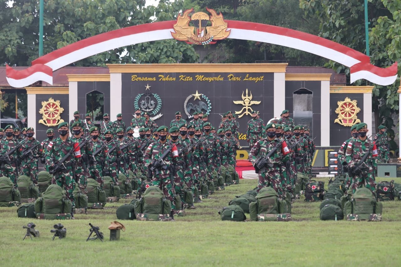Jakarta, KRsumsel.com – Panglima TNI Marsekal TNI Hadi Tjahjanto, S.I.P. didampingi Pangkogabwilhan III Letjen TNI Ganip Warsito, S.E., M.M. dan Kaskostrad Mayjen TNI Ainurrahman mengecek kesiapan Batalyon Infanteri Para Raider 501/Bajra Yudha (Yonif Para Raider 501/BY) di Madiun, Jawa Timur, Kamis (28/1/2021).