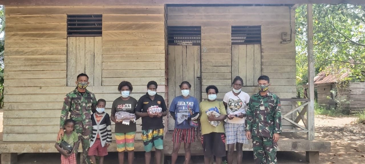 Diungkapkan Dansatgas, menjelang berakhirnya masa penugasan di wilayah perbatasan RI-PNG, lima orang personel Satgas dari Pos Kondo dipimpin Serda Agus Rinto Sitinjak kembali menyambangi warga dan membagikan pakaian layak pakai.