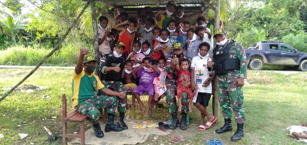 “Ya, Padahal jarak antara Pos dengan Kampung cukup jauh sekitar 3 km, namun hampir setiap hari mereka berbondong-bondong mendatangi Pos untuk bermain dan belajar dengan anggota. Kami sangat senang karena merasa sudah dianggap menjadi bagian dari mereka,” ucapnya.