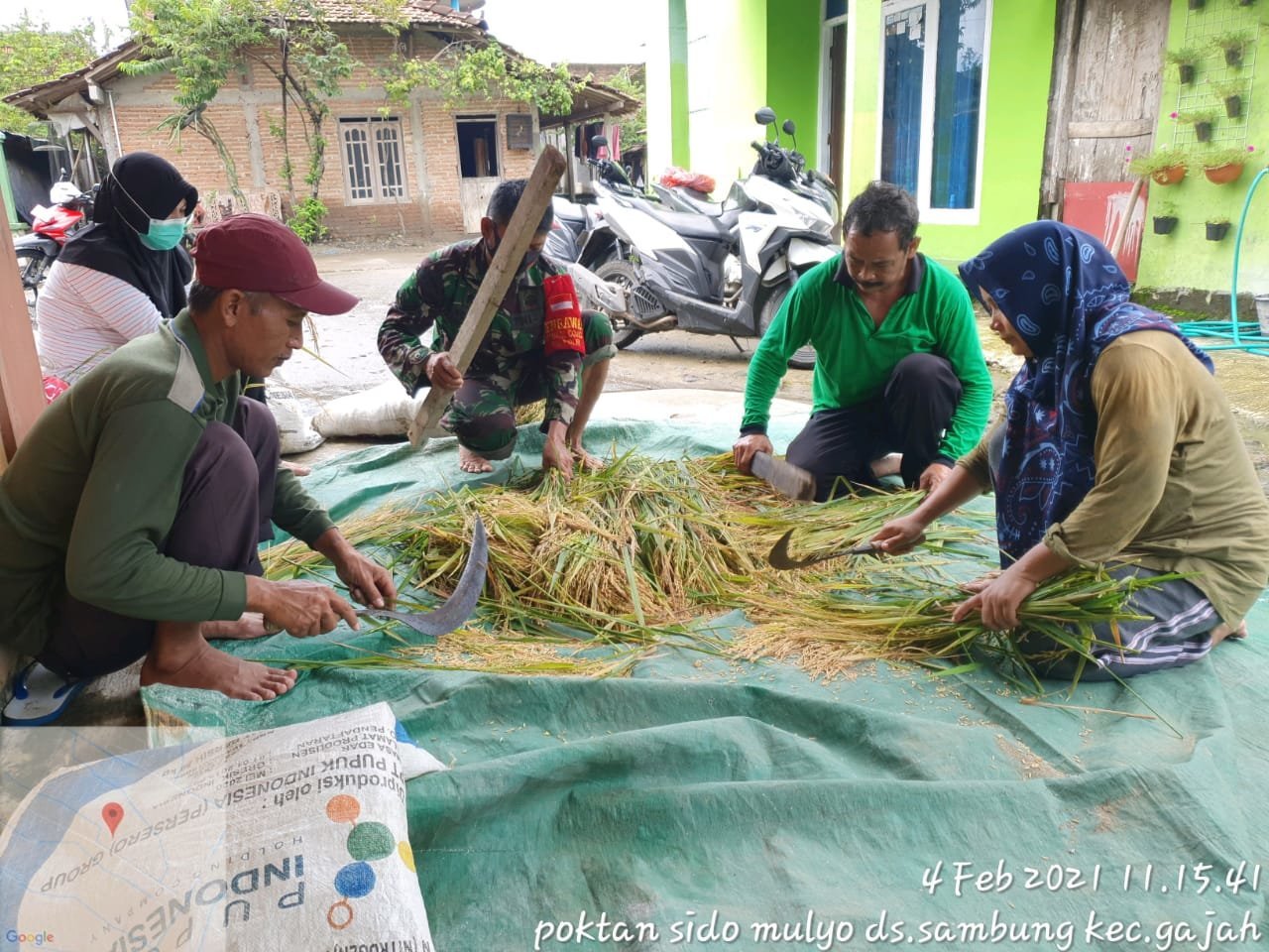 Demak, KRSUMSEL.com – Babinsa Sambung Koramil 07/Gajah Kodim 0716/Demak Sertu Jumah Rosidin bersama dengan petugas PPL Kecamatan Gajah dan Kelompok tani Sido Mulyo melaksanakan kegiatan Pengubinan tanaman padi milik Bapak Mustakim Rt 01/03 Desa Sambung Kecamatan Gajah Kabupaten Demak. Kamis 4/02/2021.