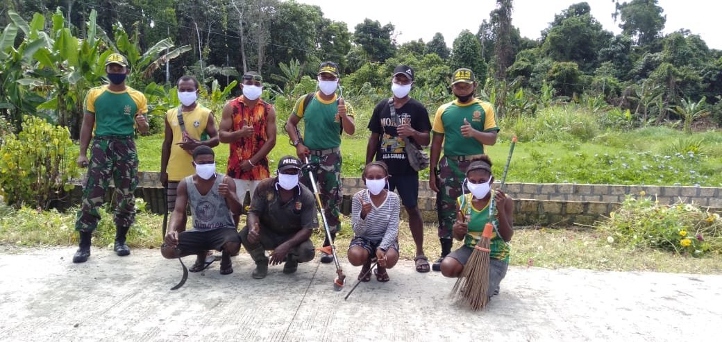 Jayapura, KRsumsel.com – Prajurit Satgas Pamtas RI-PNG Yonif Mekanis Raider 413 Kostrad Pos Mosso bersama masyarakat melaksanakan kegiatan karya bhakti pembersihan tanaman liar di pinggir jalan Kampung Mosso Distrik Muara Tami Kota Jayapura.