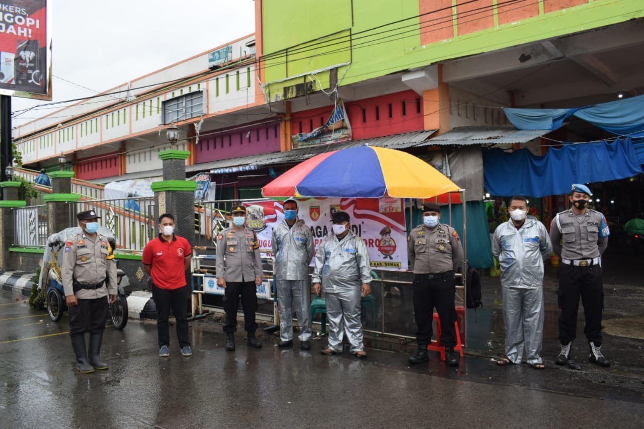 Hampir sama dengan kabupaten tetangganya, Purwodadi, Pemkab Demak juga mengijinkan pasar-pasar tradisional tetap buka. Mengenakan pengeras suara, tim gabungan menyisir sudut pasar, menyosialisasikan protokol kesehatan sembari membagikan masker kepada para pengunjung pasar.