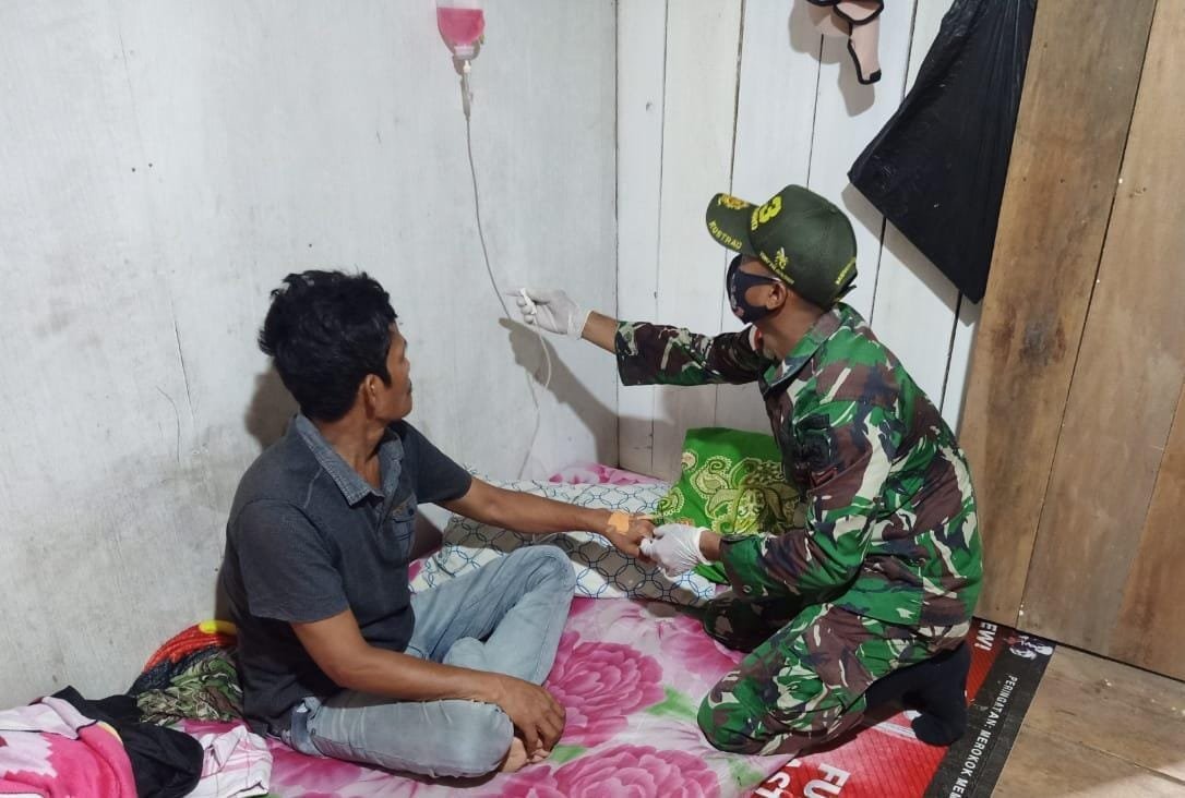 Jayapura, KRsumsel.com – Satgas Pamtas RI-PNG Yonif Mekanis Raider 413 Kostrad Pos Pitewi memberikan perawatan kepada salah satu warga Kampung Pitewi Distrik Arso Timur Kabupaten Keerom yang terjangkit penyakit Malaria Tersiana.