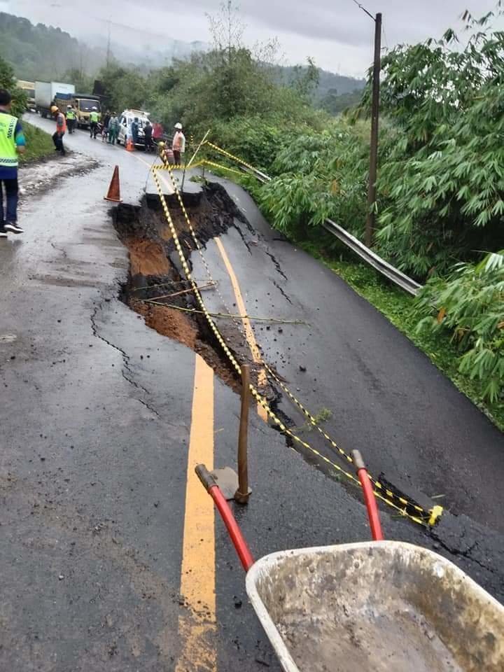 PAGARALAM, KRSUMSEL.COM- Akibat diguyur hujan yang cukup lama, mengakibatkan jalan amblas sepanjang ratusan meter antara Kabupaten Lahat dengan Pagaralam, yang terletak di wilayah desa Lubuk sepang, Pulau Pisang kabupaten Lahat.
