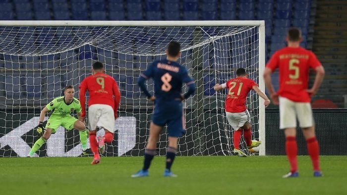Benfica dan Arsenal menggelar leg pertama babak 32 besar Liga Europa di Olimpico, Roma, Jumat (19/2/2021) dini hari WIB. Kedua tim bermain imbang tanpa gol di babak pertama.