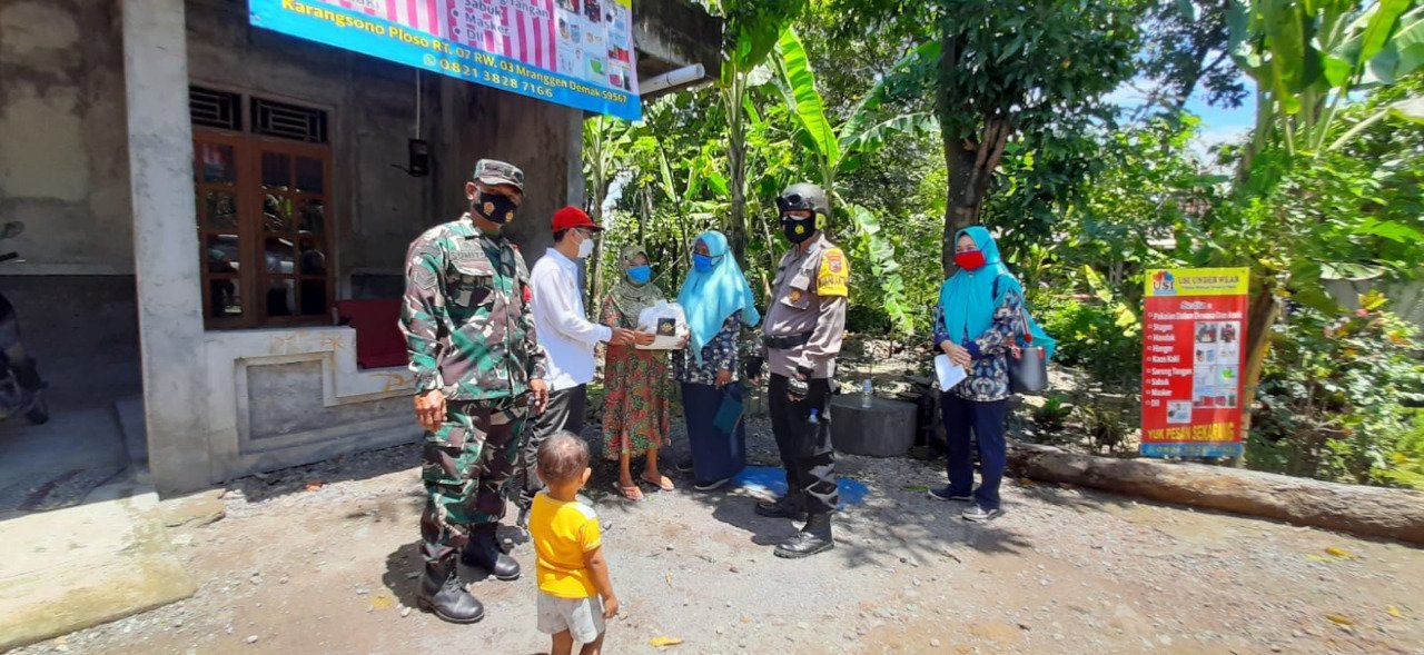 Dalam penyaluran bantuan berupa sembako tersebut, Komunitas Amanah didampingi Babinsa Koramil 12/Mranggen Kodim 0716/Demak Serka Sumito, Bhabinkamtibmas Bripka Imam Suhari, Ketua PKK Desa Karangsono Ny. Mustakim beserta pengurus, dan petugas Puskesmas Mranggen II.