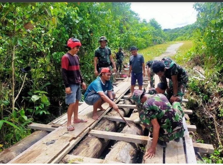 “Untuk mendukung kelancaran dan keamanan aktivitas sehari-hari warga, prajurit Pos Towe Hitam bersama warga saling bahu membahu memperbaiki jembatan yang kurang layak pakai itu,” jelas Dedy.
