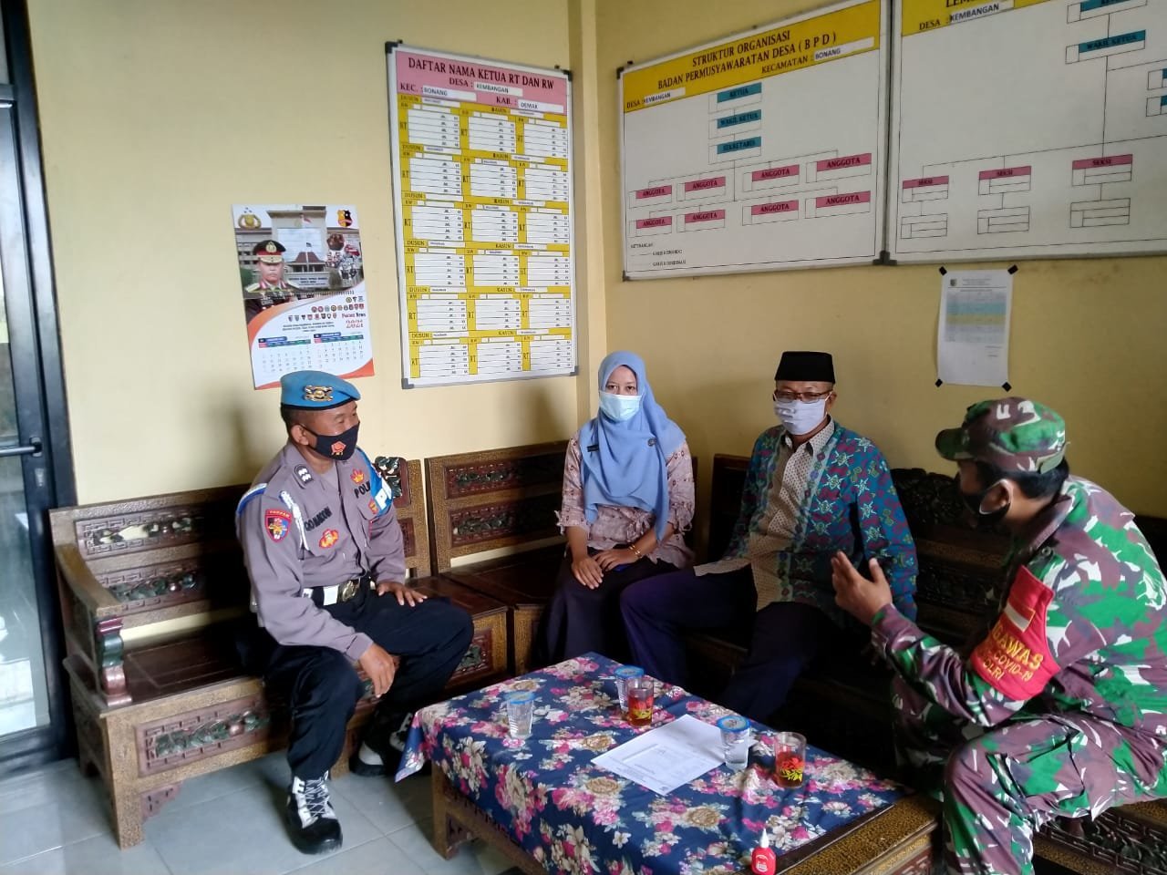 Demak, KRSUMSEL.com – Rabu, (24/02/21), Bertempat di Kantor Balai Desa Kembangan, Babinsa Koramil 02/Bonang jajaran Kodim 0716 Demak Kopda Arif Dwi bersama Bhabinkamtibmas melaksanakan kegiatan rutin, yaitu melaksanakan interaksi secara langsung dengan Kepala Desa beserta perangkat di desa Kembangan Kecamatan Bonang Kabupaten Demak.