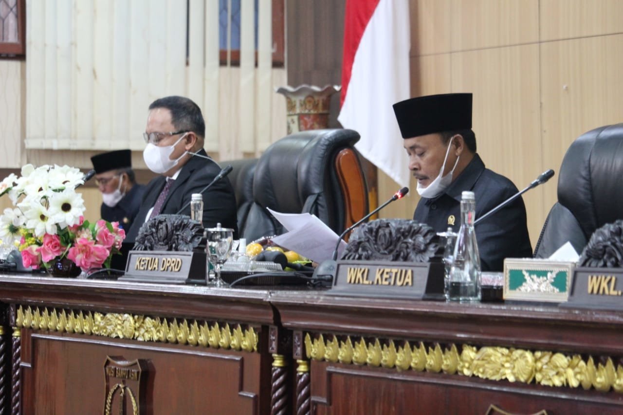 Sidang Paripurna ini dipimpin oleh Ketua DPRD Sugondo didampingi Wakil Ketua I DPRD Jon Kenedi, SIP.,M.Si dan Wakil Ketua II DPRD Irwin Zulyani, SH dihadiri Anggota DPRD Muba, Bupati Muba Dr. H. Dodi Reza Alex Noerdin Lic Econ MBA, Sekretaris Daerah Muba, Asisten Setda Muba, Sekretaris DPRD Muba Drs. M. Thabrani Rizki, Polres Muba, Dandim 0401/Muba, Perangkat Daerah Muba dan Pihak Terkait lainnya yang hadir secara Virtual.