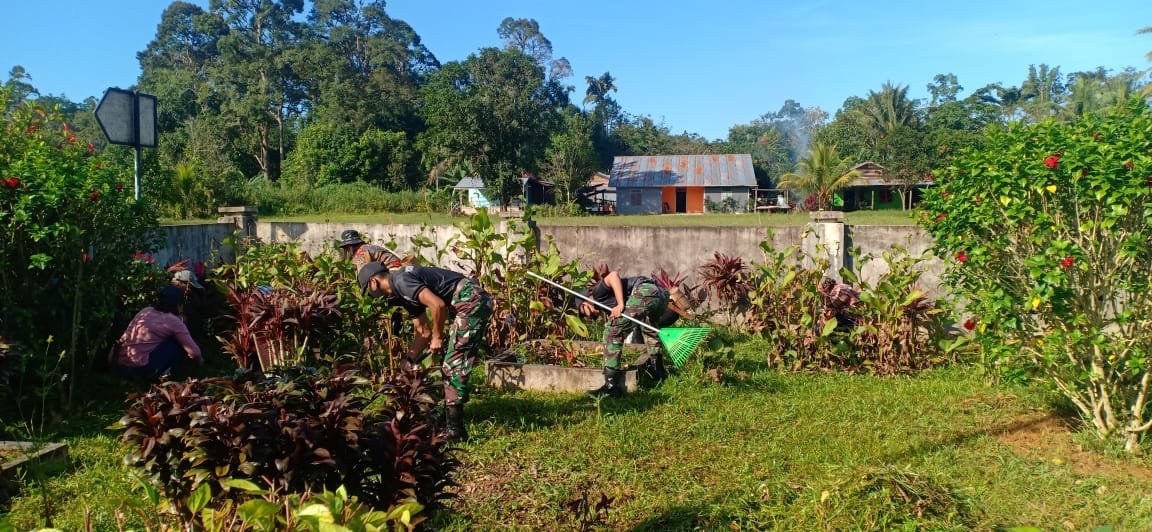Bengkayang, KRsumsel.com – Satgas Pamtas Yonif 642/Kapuas Pos Koki Jagoi Babang dipimpin oleh Kapten Inf Supriyo melaksanakan karya bhakti pembersihan lingkungan Dusun dan SD Negeri 01 Jagoi bersama masyarakat serta guru di Dusun Jagoi Babang, Kec. Jagoi, Kab. Bengkayang, Kalbar, Jumat (26/2/2021).