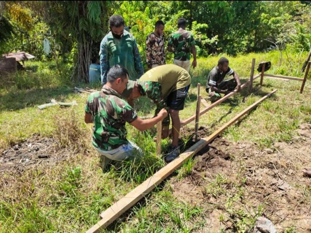 Jakarta, KRsumsel.com – Personel Satgas TNI Manunggal Membangun Desa (TMMD) Reguler Ke-110 Kodim 1711/Boven Digoel di Distrik Kawagit, Kabupaten Boven Digoel, bahu membahu bersama warga mengawali pembangunan sasaran fisik program TMMD dengan membuat bekesting pondasi rumah dilanjutkan dengan pengecoran.