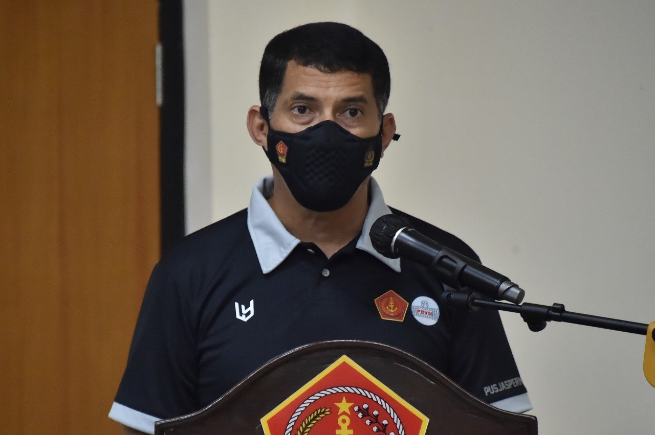 Jakarta, KRsumsel.com – Kepala Pusat Jasmani dan Peraturan Militer Dasar (Kapusjaspermildas) TNI Brigjen TNI Robert D. Ndona memberikan pengarahan akhir pada penutupan pembekalan pelatih bola voli tahun 2021, bertempat di kantor Pusjaspermildas Mabes TNI, Cilangkap, Jakarta Timur, Jumat (5/3/2021).