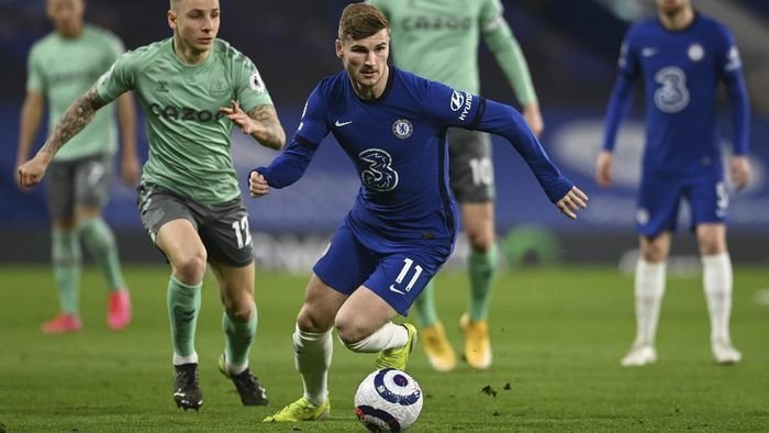 Werner menjadi starter di pertandingan Liga Inggris antara Chelsea vs Everton di Stamford Bridge, London, Inggris, Selasa (9/3/2021) dini hari WIB. Ia dipasang menjadi sayap kanan, bersama Callum Hudson-Odoi di kiri, mengapit Kai Havertz yang menjadi False 9.