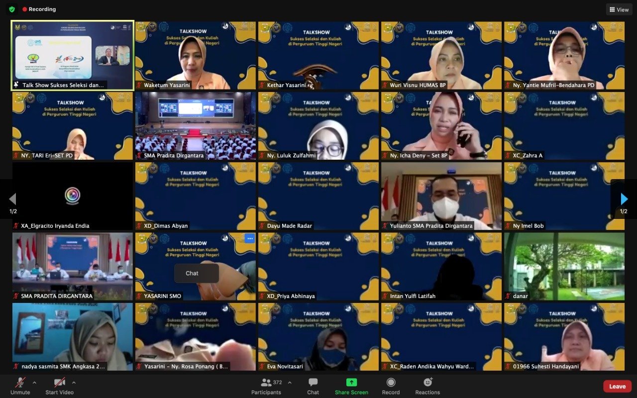 Boyolali, KRsumsel.com – SMA Pradita Dirgantara mengadakan acara Talk Show bertemakan “Sukses Seleksi dan Kuliah di Perguruan Tinggi Negeri bersama Para Rektor”, Senin (8/3/2021) melalui aplikasi zoom. Acara ini diselenggarakan atas kerjasama dengan Universitas Sebelas Maret dimana SMA Pradita Dirgantara merupakan labschool dari UNS. Event webinar ini bertujuan untuk memberikan gambaran bagaimana kehidupan perkuliahan di perguruan tinggi, lengkap dengan bagaimana langkah sukses dalam menjalani seleksi masuk ke perguruan tinggi yang diimpikan oleh para siswa SMA.