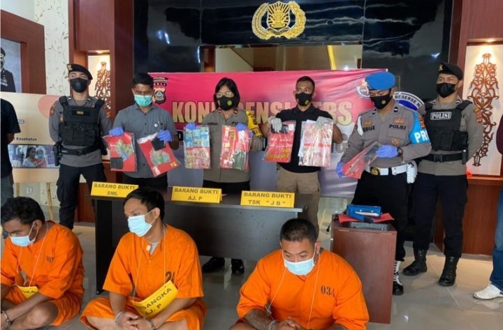 Denpasar, KRsumsel.com – Tiga residivis berinisial IKM alias Semal, PAP alias Anjas, dan AJ alias Jebing terancam 20 tahun penjara karena terlibat sebagai sindikat pengedar narkotika jenis sabu-sabu.