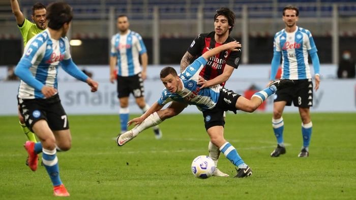 Milan ditumbangkan Napoli 0-1 di San Siro pada laga pekan ke-27 Liga Italia, Senin (15/3/2021) dini hari WIB. Gol tunggal kemenangan Il Partenopei lahir dari Matteo Politano di menit ke-49.