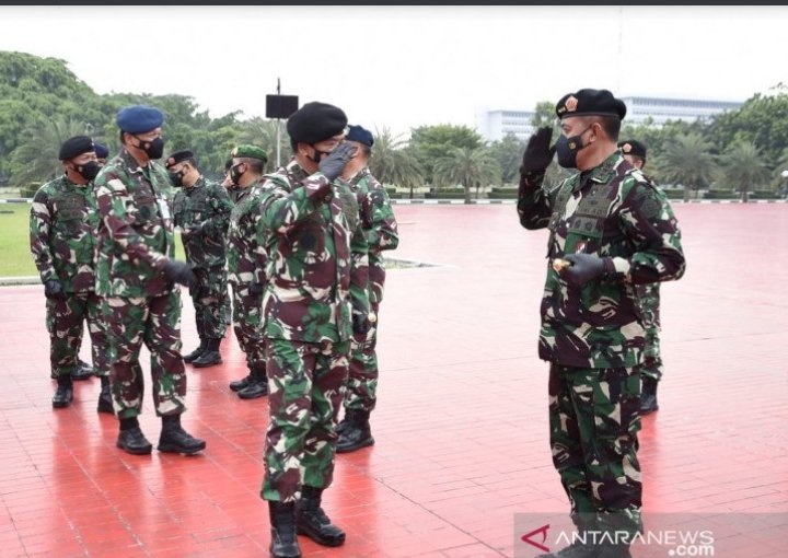 Jakarta, KRsumsel.com – Panglima TNI Marsekal TNI Hadi Tjahjanto menerima laporan korps kenaikan pangkat 57 Perwira Tinggi (Pati) TNI, di Mabes TNI Cilangkap, Jakarta Timur, Rabu.